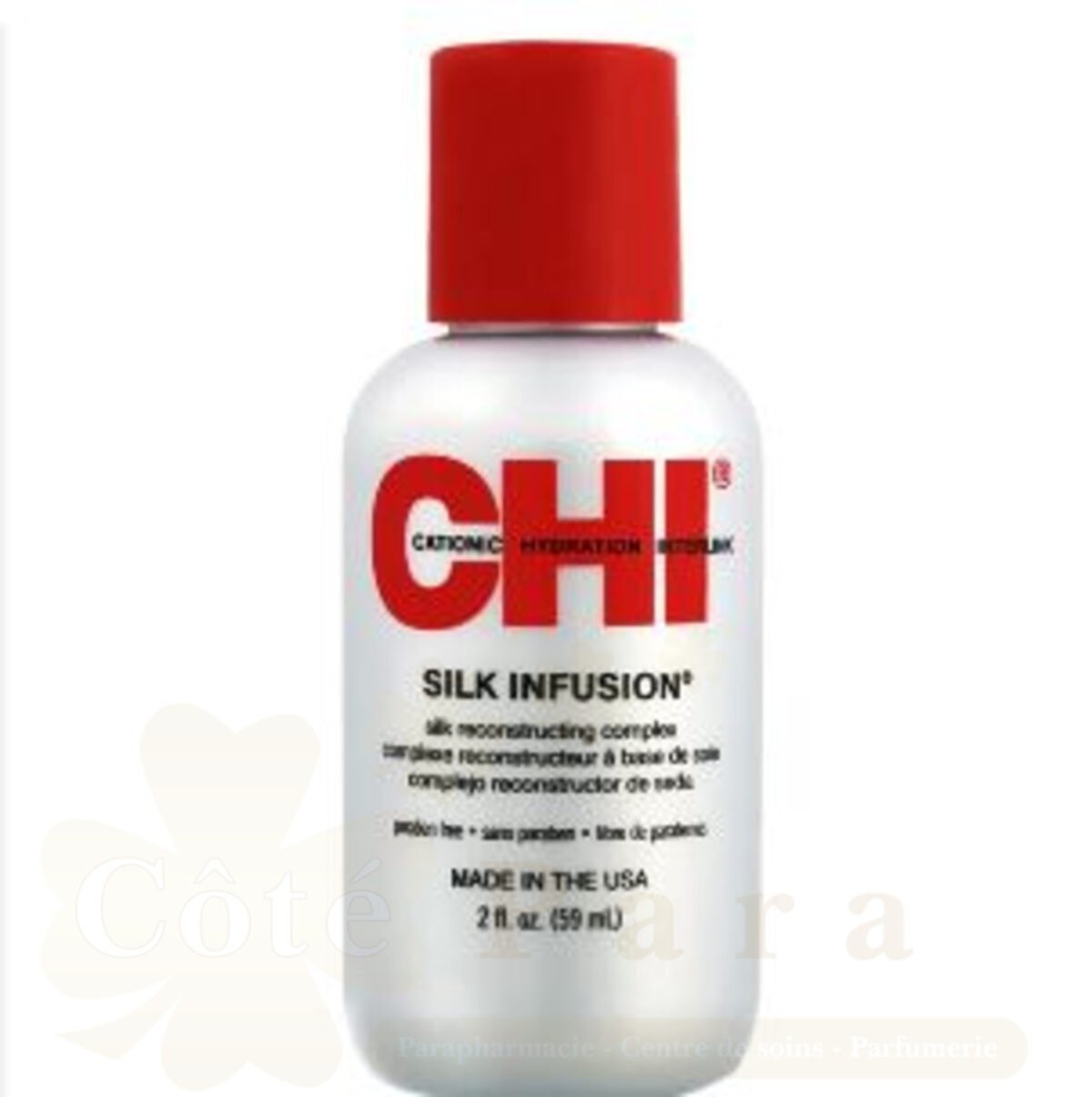 CHI Silk Infusion est un produit complexe reconstructeur enrichi en protéines de soie, de blé et de soja qui va revitaliser et aider à renforcer les cheveux. Sa formule légère redonne aux cheveux leur état le plus sain en offrant une douceur, une maniabilité et une brillance incroyables sans accumulation comme de nombreux autres produits. Avec ce produit, vous serez en mesure de gérer les frisottis et l’électricité statique.
