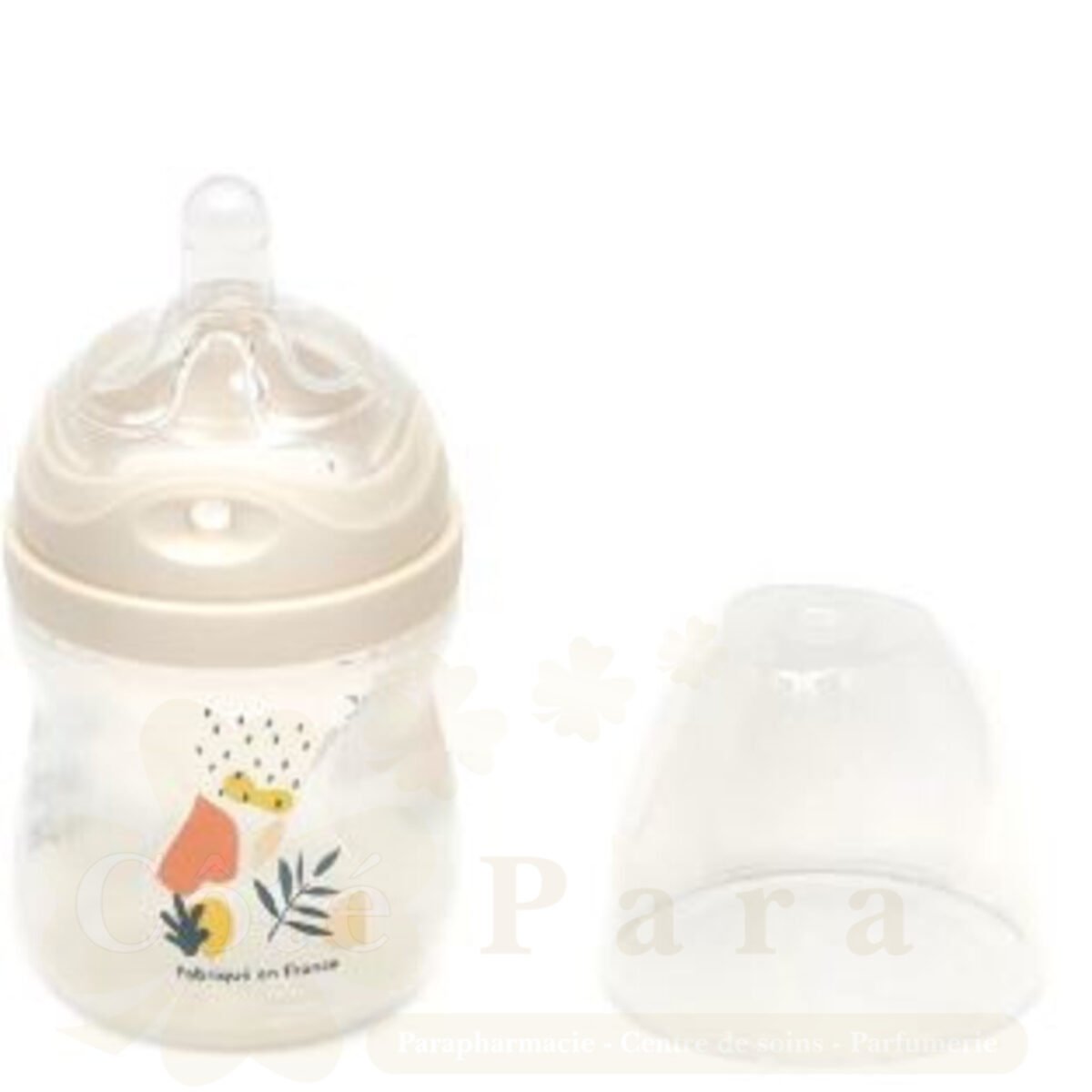 Par ailleurs ce biberon Dodie se compose de 3 éléments seulement : le corps du biberon ergonomique pour permettre une bonne prise en main par les parents puis par le bébé lorsqu’il devient autonome ; la tétine indissociable de la bague ; le capuchon anti-fuites très pratique quand vous emportez le biberon lors d’une sortie avec bébé De par sa composition ce biberon est facile à nettoyer et à assembler réduisant les petites prises de tête du quotidien des jeunes parents