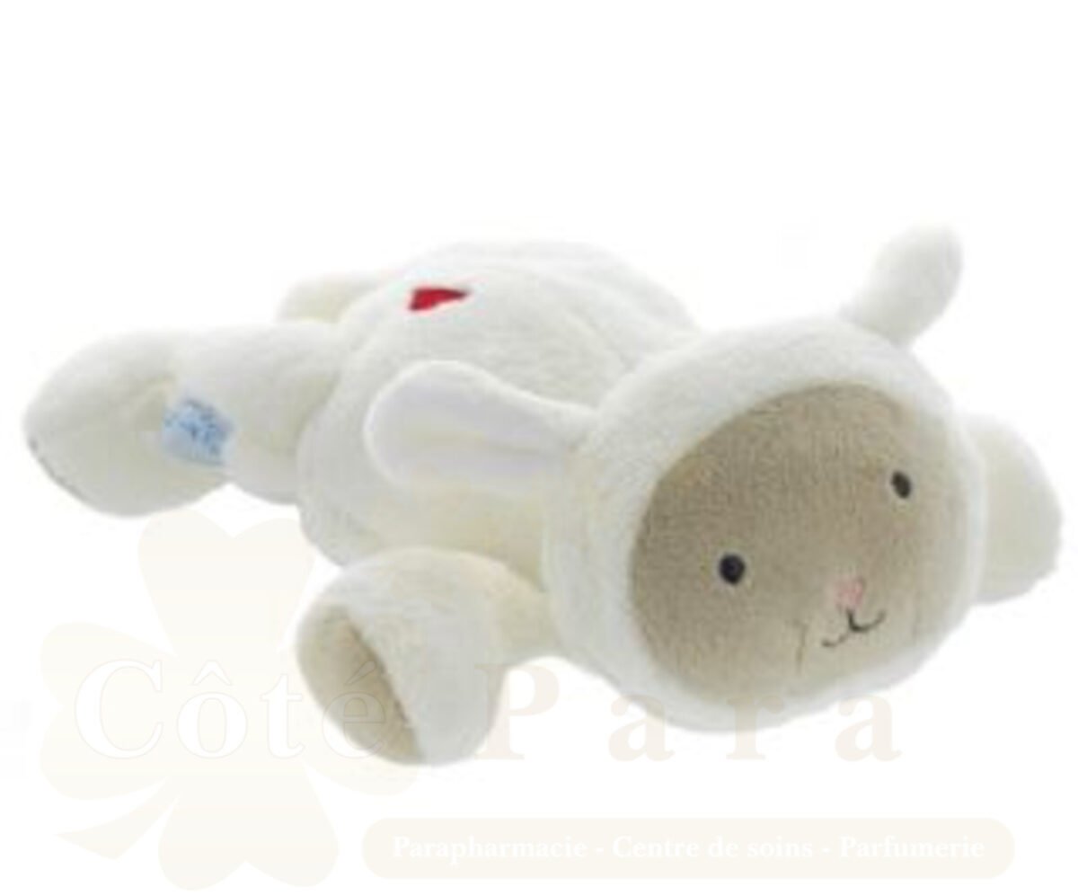Bouillotte bébé peluche avec pépins de raisins spécifiquement développée pour les bébés de +6 mois.