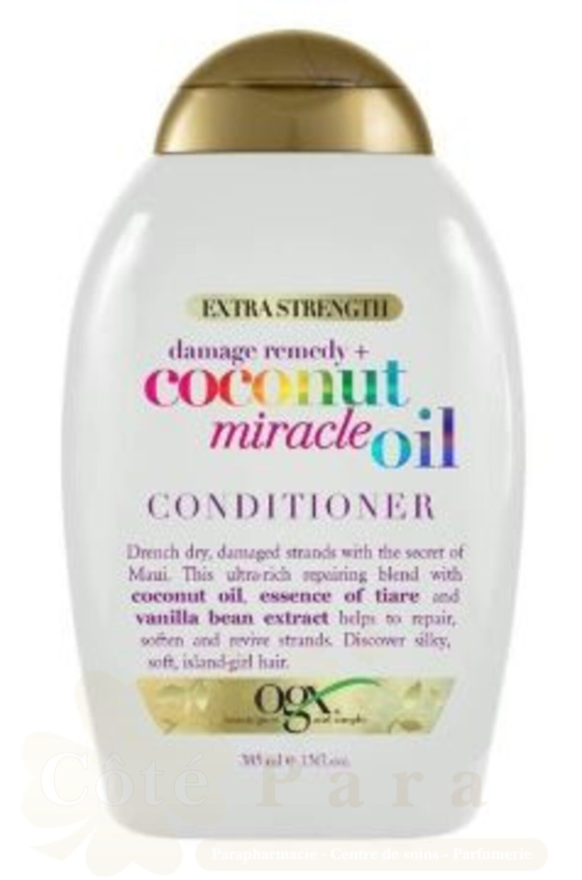 Réparez et ravivez vos mèches : cette bouteille de 13 onces liquides de OGX Extra Strength Damage Repair + Coconut Miracle Oil Conditioner aide à réparer et raviver les mèches transformant les cheveux épais et grossiers en une perfection soyeuse