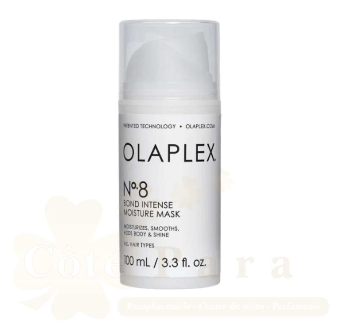 LE MASQUE HYDRATANT OLAPLEX N°8 BOND INTENSE est un masque réparateur aux multiples bienfaits qui HYDRATE, LISSE, DONNE DU CORPS ET DE L’ÉCLAT. Les cheveux sont visiblement éclatants, à tel point que vous pouvez faire l’impasse sur le coiffage.Disponible dans votre parapharmacie en ligne www.cotepara.ma